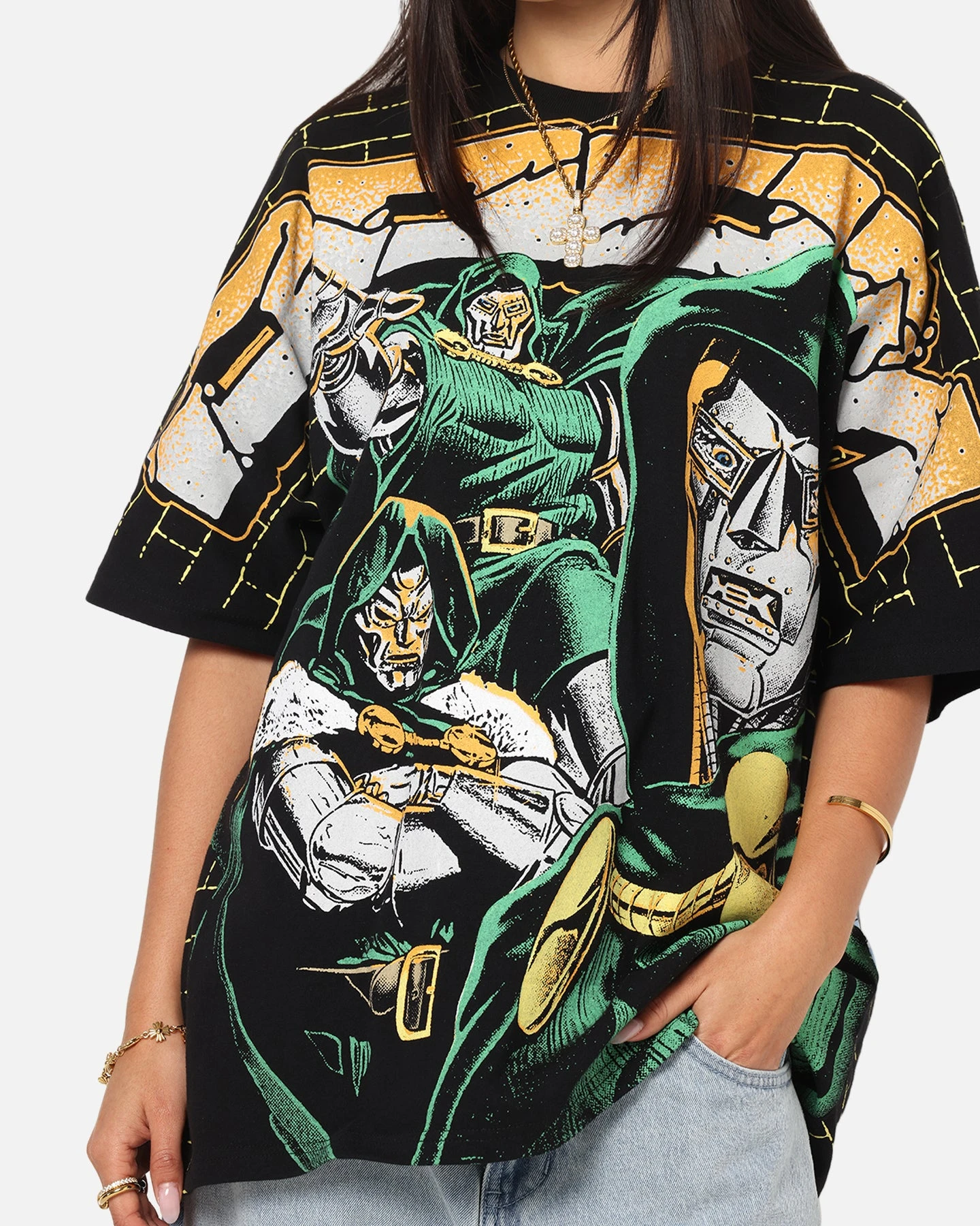 Let everyone know it’s Doom’s Day in the insanely epic Marvel Doctor Doom All Over Print T-Shirt. Decked out in printed graphics of the iconic villain on a premum cotton construction and twin needle stitching to finish it off. Be sure to secure yours today at Culture Kings.