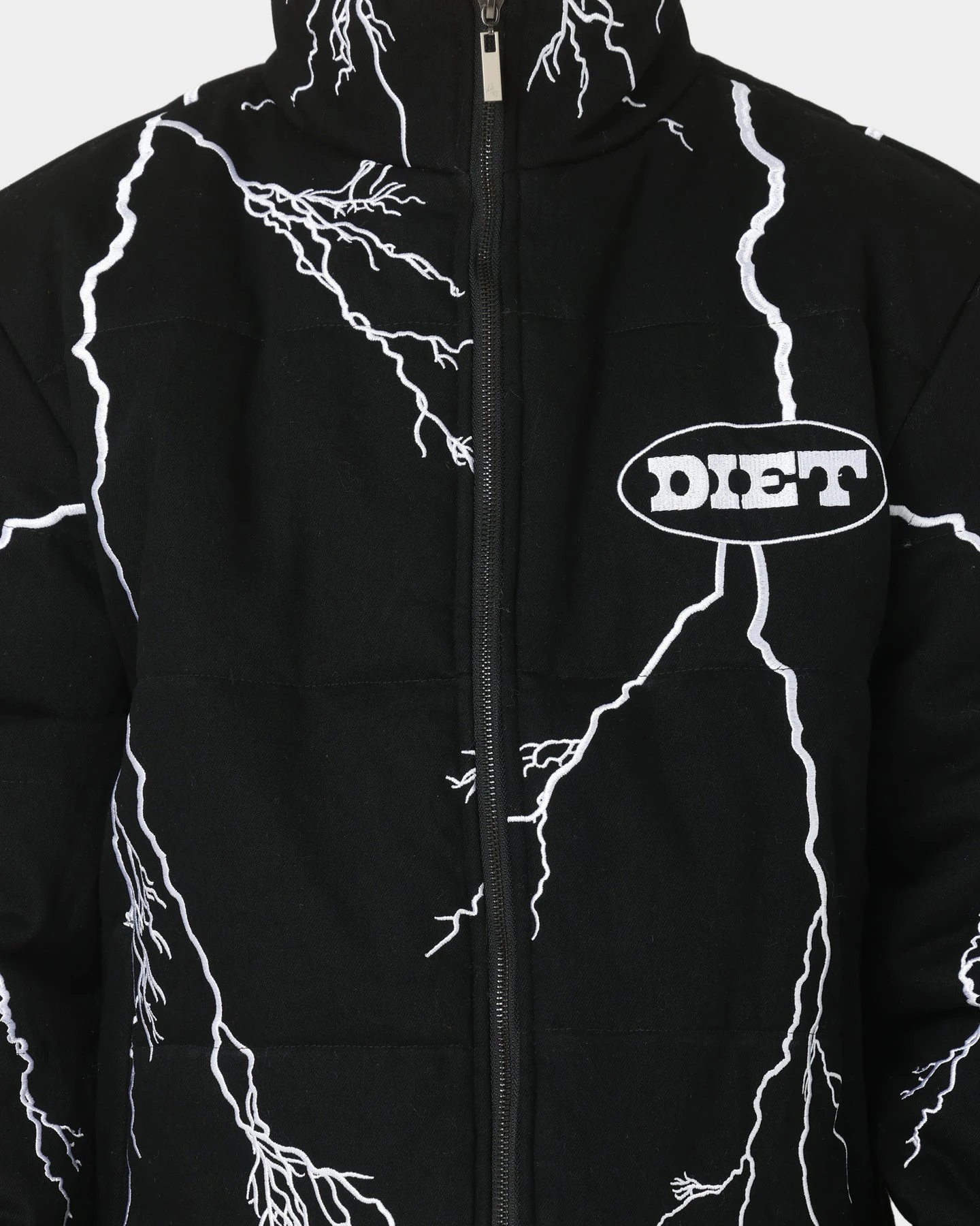 Diet Starts Monday brings the thunder with their new Bolt Puffer Jacket. It features a custom embroidered lightning bolt design all over for a unique look with an embroidered brand logo on the chest and a large cracked print logo on the back. This Aussie exclusive won’t last long.