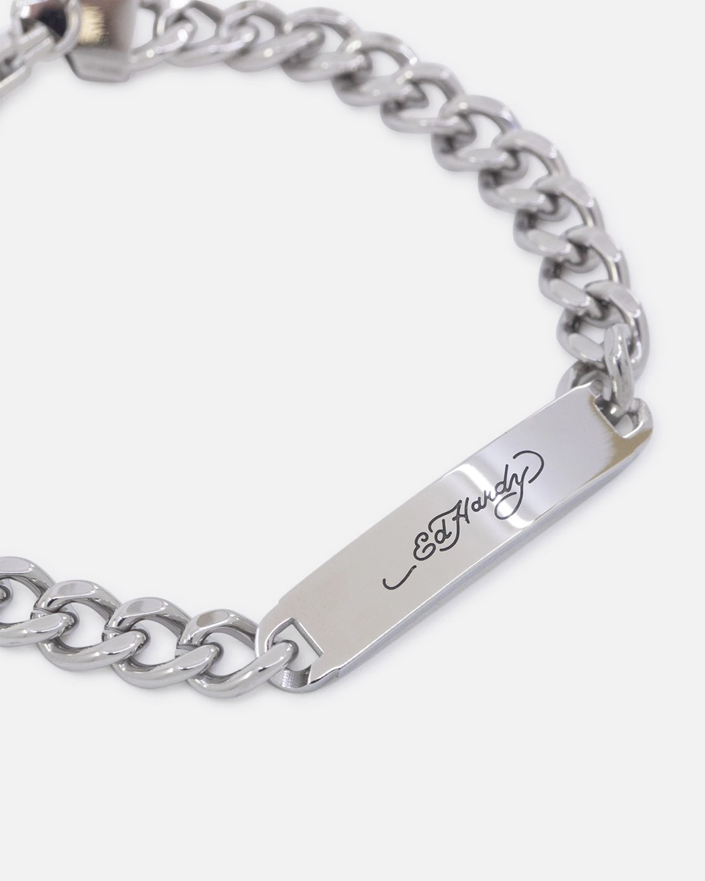 Finish off your fits’ with the Scroll Logo Curb Chain Bracelet by Ed Hardy. Featuring engraved detailing designed on classic square curb links with a lobster clasp closure for a secure fit. Cop yours today at Culture Kings.