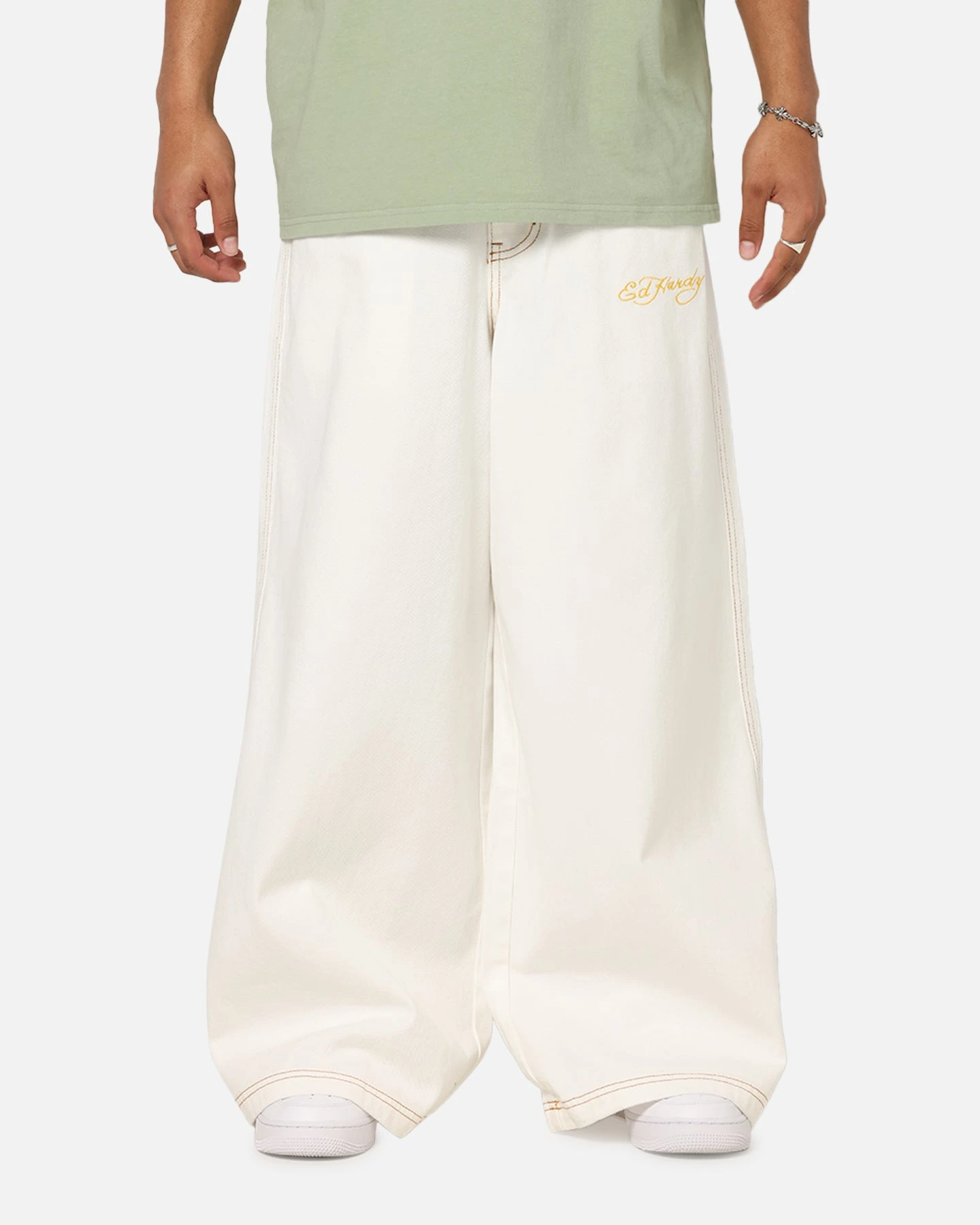 Step up your style game with the Ed Hardy Ultra Wide Leg Denim Jeans—where classic craftsmanship meets bold artistic expression. Designed to celebrate individuality, these jeans feature unique embroidered and printed graphics that celebrate the artistic tattoo designs of Ed Hardy and details that make a statement with every wear and the baggy wide-leg fit that blends the effortless streetwear style. Finished with premium denim construction and contrast stitching ensures you stand out from the rest. This is a must-have in any wardrobe.