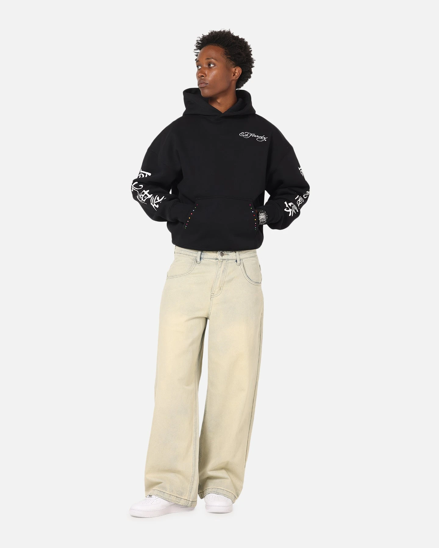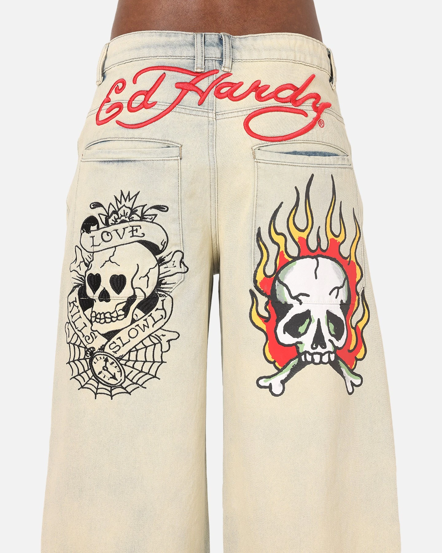 Step up your style game with the Ed Hardy Wide Leg Skull Jeans—where classic craftsmanship meets bold artistic expression. Designed to celebrate individuality, these jeans feature unique embroidered and printed graphics that celebrate the artistic tattoo designs of Ed Hardy and details that make a statement with every wear and the baggy wide-leg fit that blends the effortless streetwear style. Finished with premium denim construction and contrast stitching ensures you stand out from the rest. This is a must-have in any wardrobe.