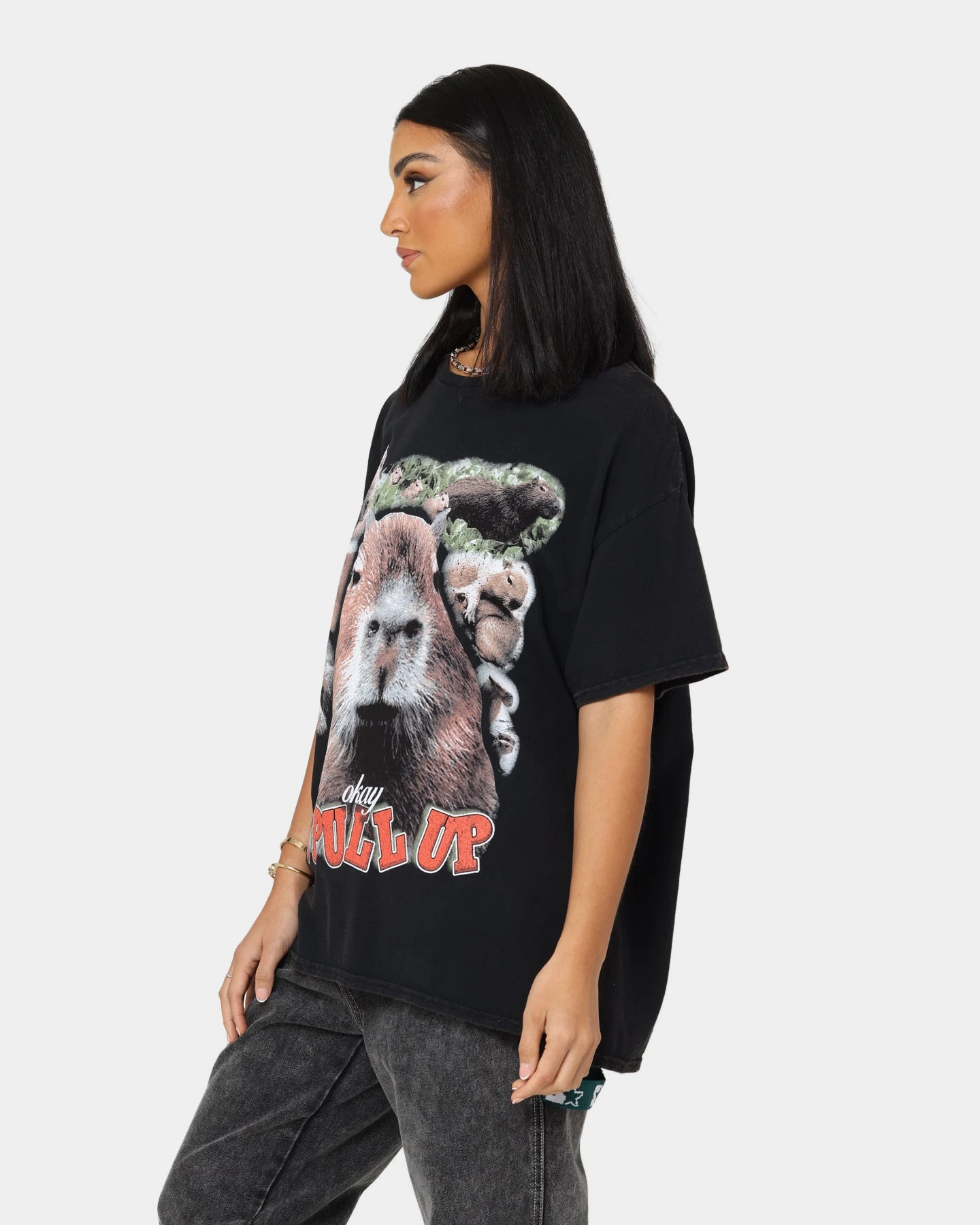 Submit to the Capybara Supremecy and cop this iconic tee. With graphics inspired by the viral Tik Tok trend, a vintage wash, and an oversized streetwear fit, you’ll pull up looking the part. Immerse yourself in the Capyverse with this world exclusive tee!