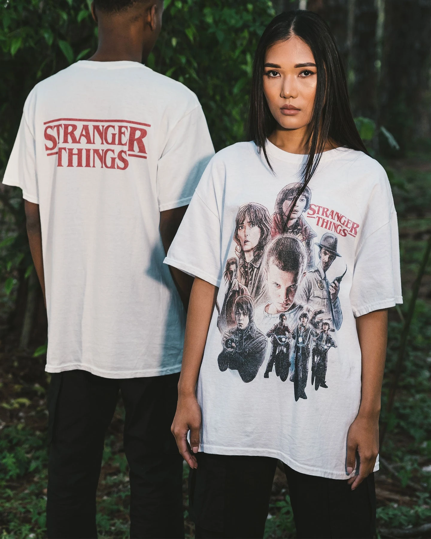 Stranger Things have happened than a Goat Crew and Netflix collaboration dropping on the anniversary of Will Byers’ disappearance. Featuring an acid wash, intentionally cracked graphics, and an oversized fit. Be a part of the gang and do your part to save Hawkins with the Group Vintage T-Shirt.