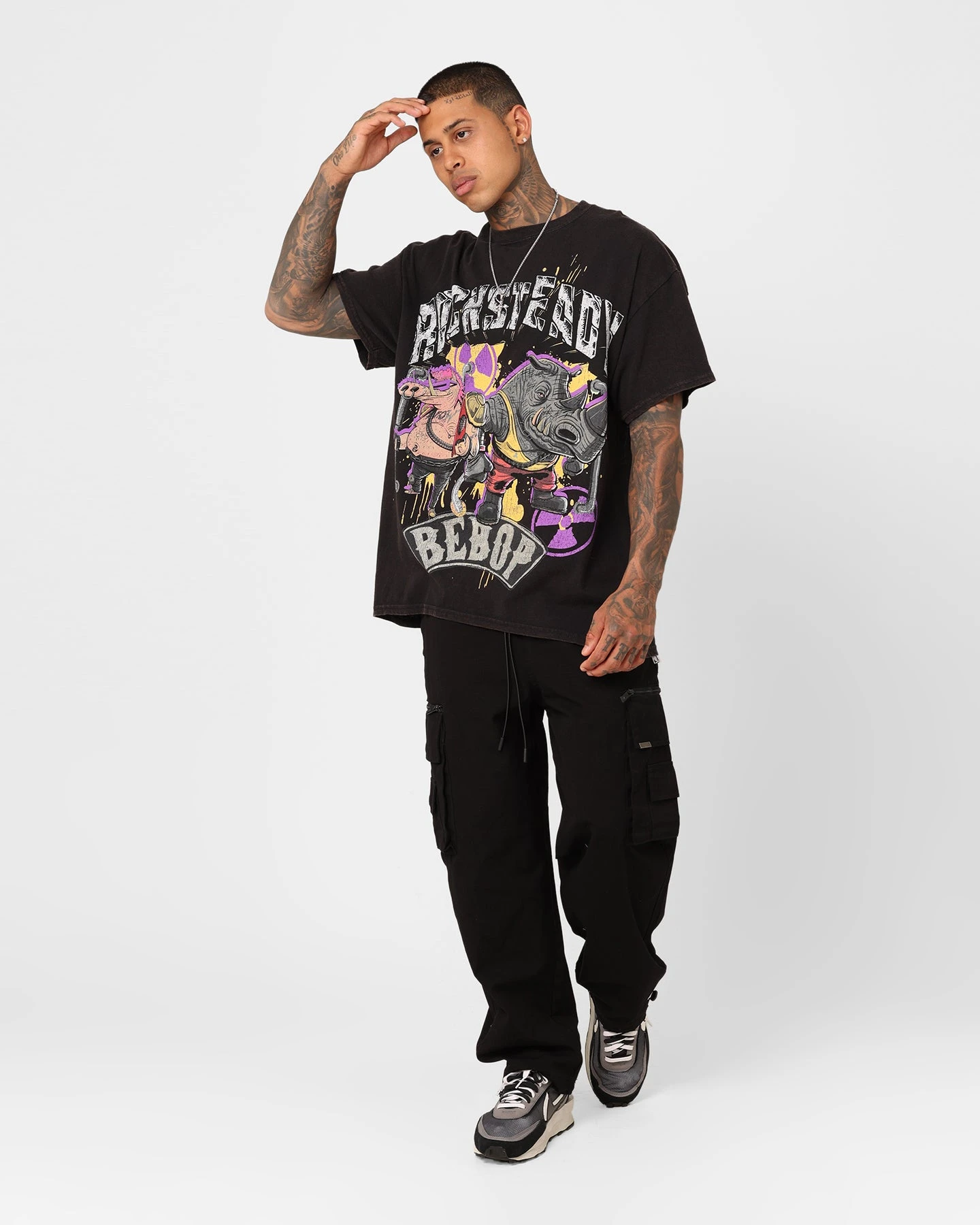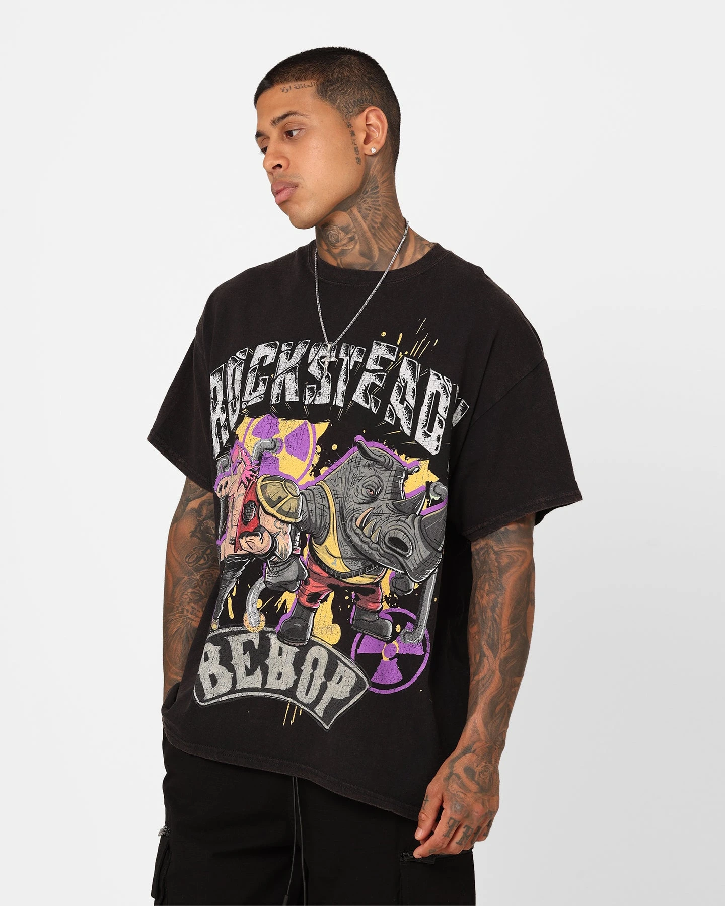 Bring some mayhem to your wardrobe with the sickest collab out brought to you by Goat Crew and TMNT. This tee features dope printed graphics of the infamous Rocksteady on a premium cotton construction with twin-needle stitching so you know it could outlast even Shredder. Get prepped for Mutant Mayhem and make your way into sewers to cop yours today at Culture Kings.