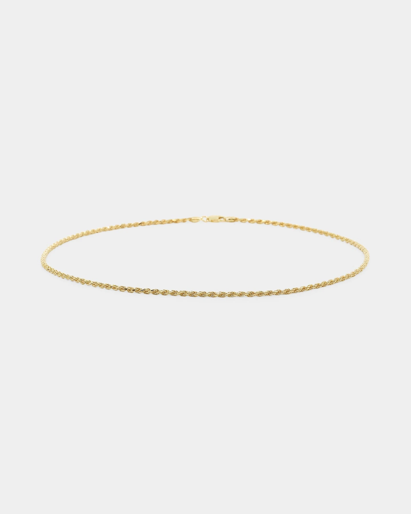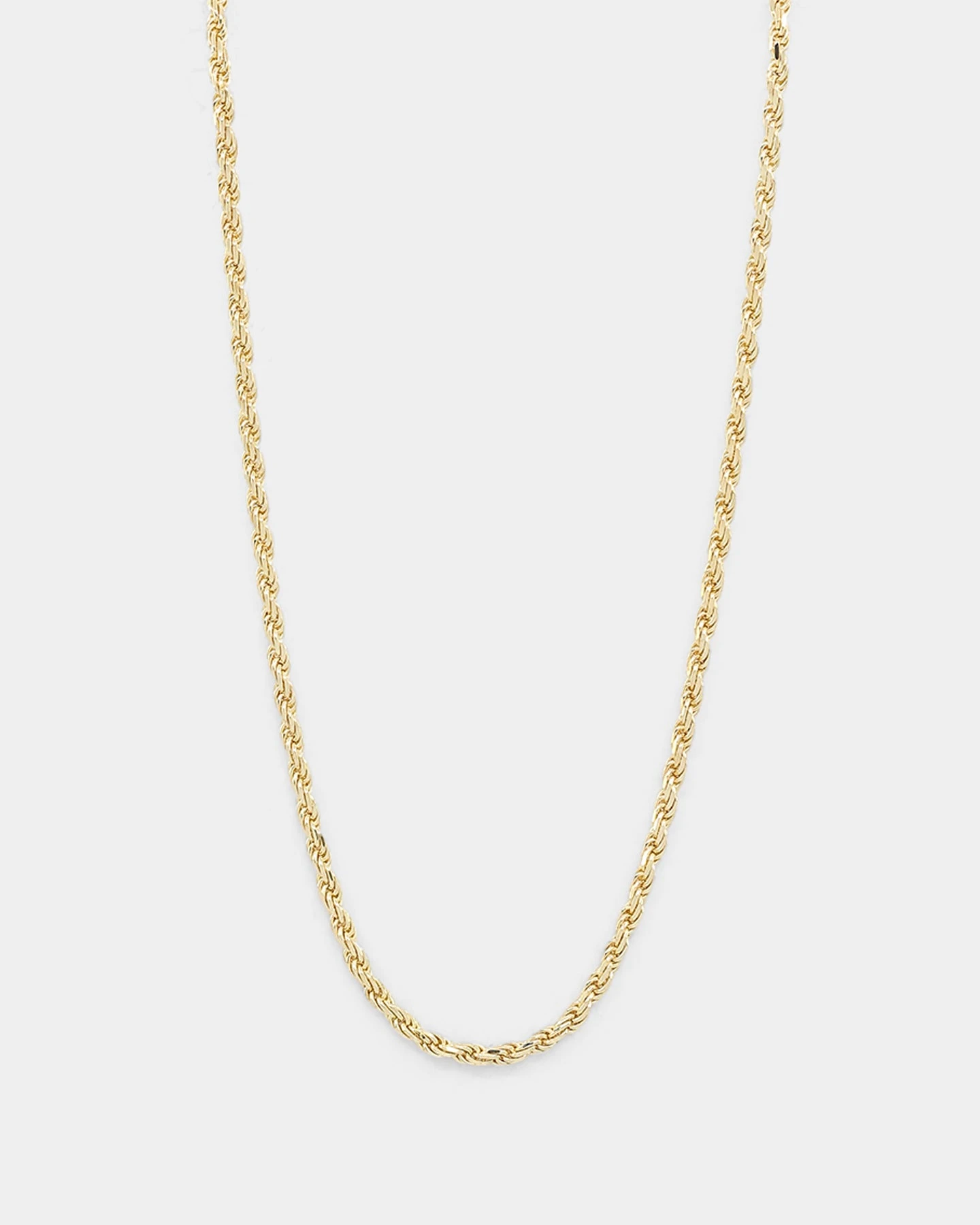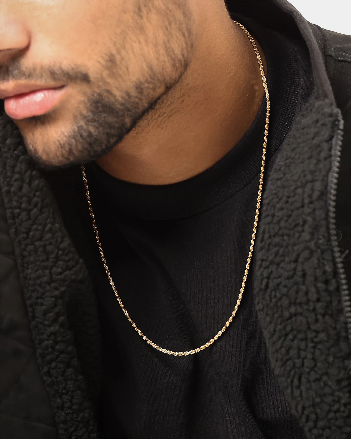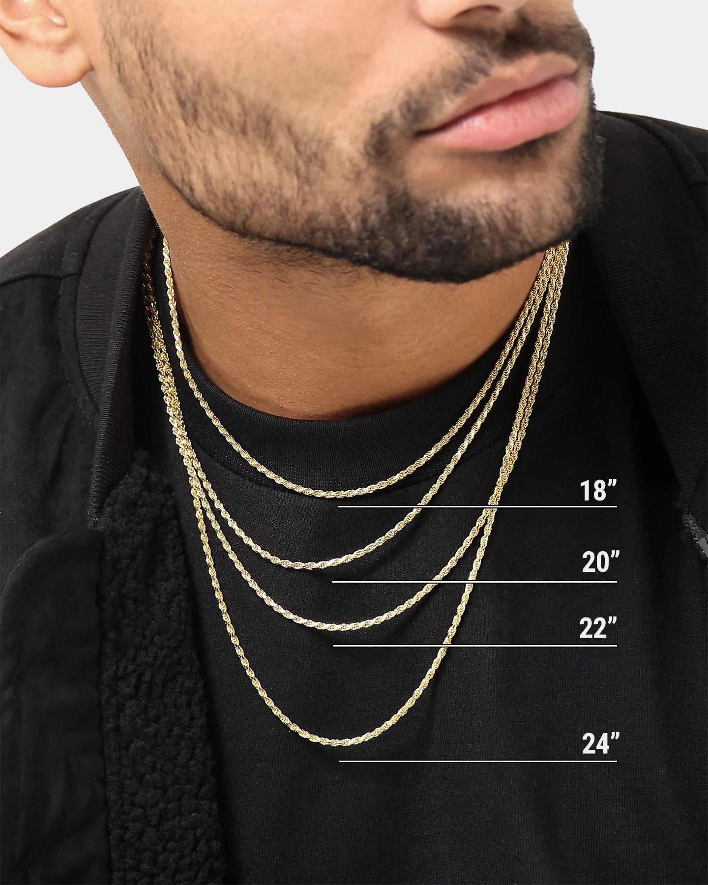 An elegant piece that will add the finishing touch to any outfit. The 2.5mm Rope Chain features an intricate and classic rope chain, a strong lobster clasp closure, and a high-quality 18K Gold coating tested to 2.5 microns thick over a base of 925 Sterling Silver, ensuring a durable and long-lasting quality finish. With multiple lengths available, you’ll create the perfect necklace combos. Be sure to secure yours today and thank us later.
