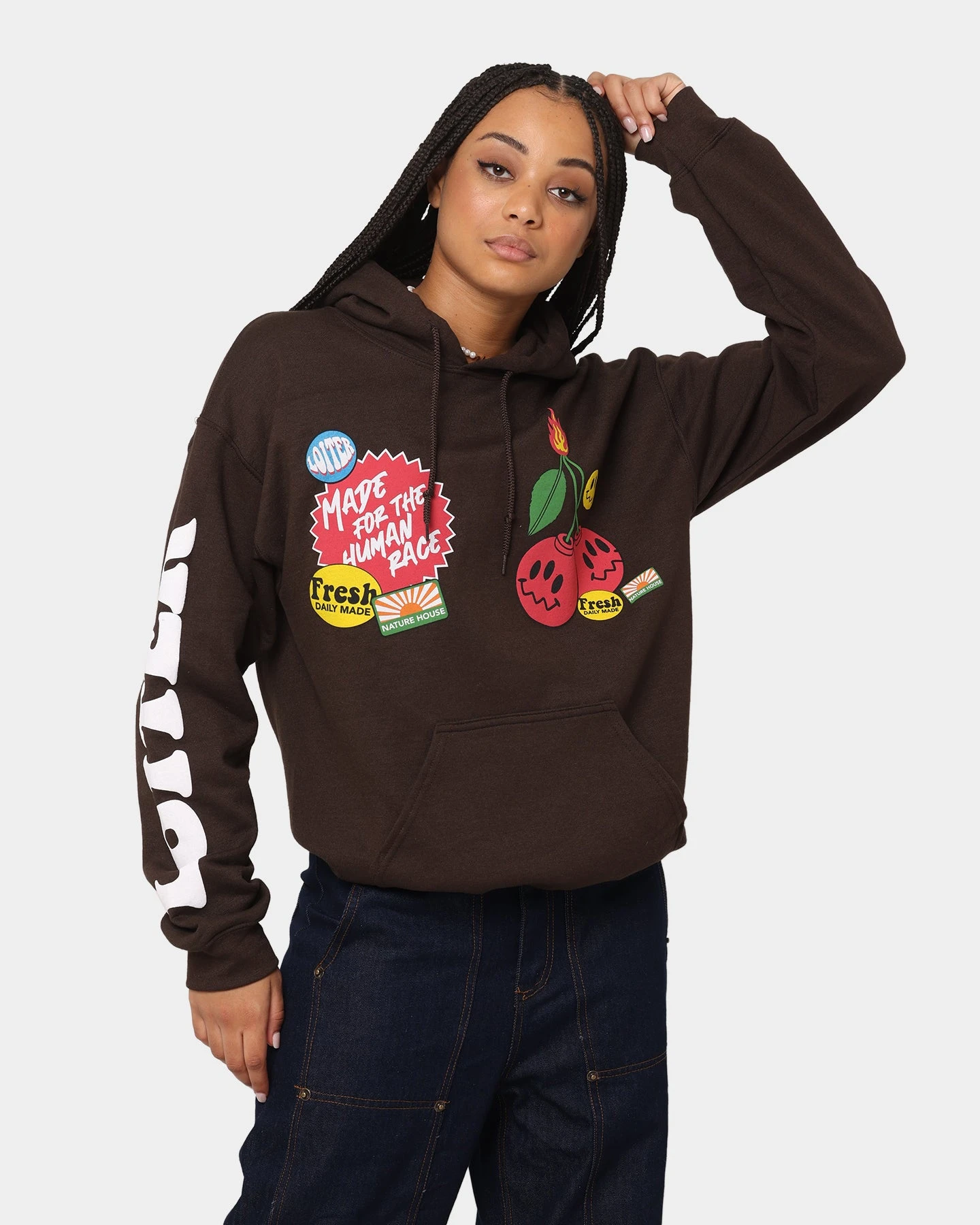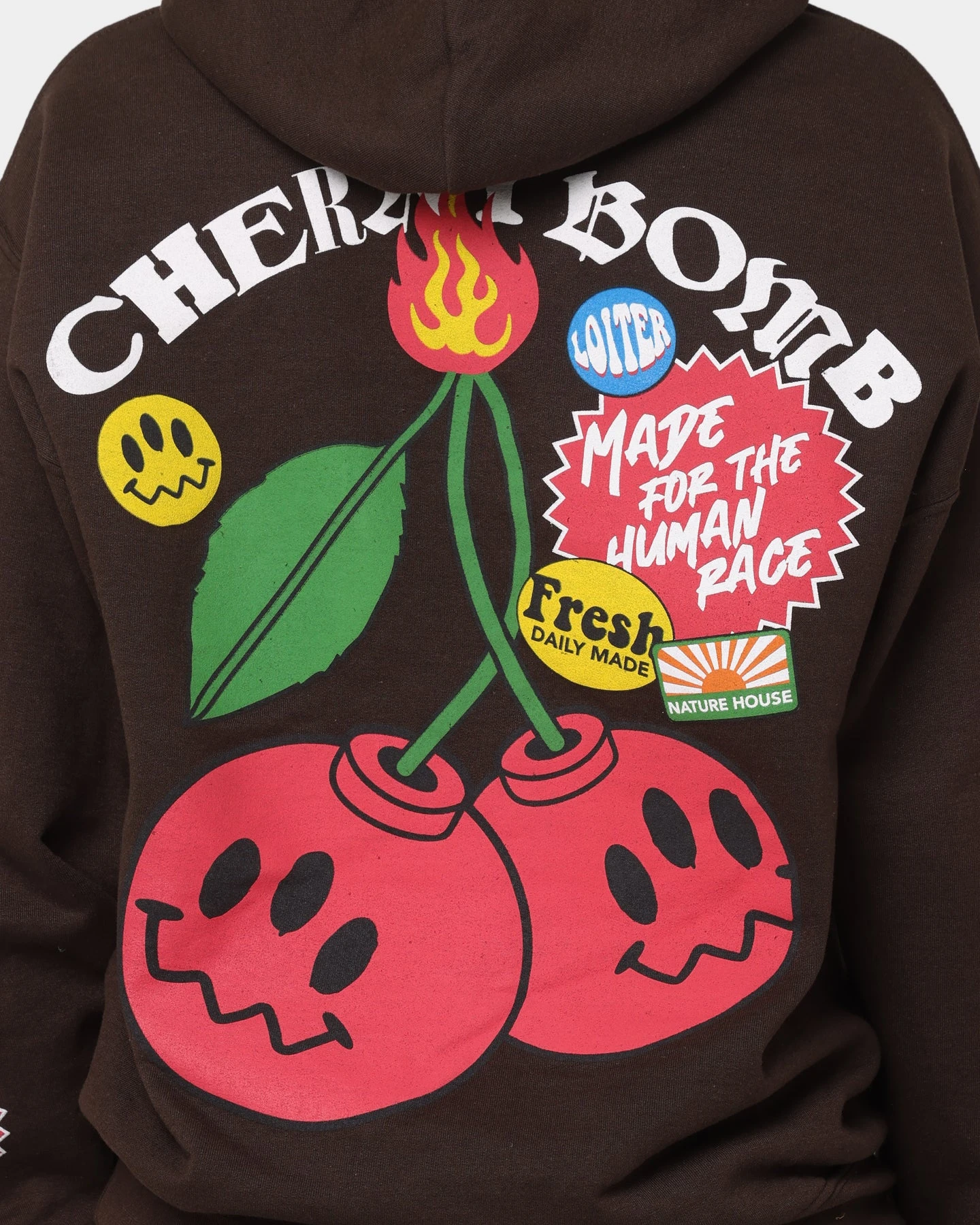 The Cherry Bomb Hoodie is an epic piece from Loiter’s latest drop. This hoodie is loaded with custom graphics on the front, back and sleeves. But just because this hoodie is serving when it comes to the design, doesn’t mean it isn’t practical. With the fleece lining, ribbed cuffs and hem, and cosy kangaroo pocket you’ll stay toasty warm all winter long.