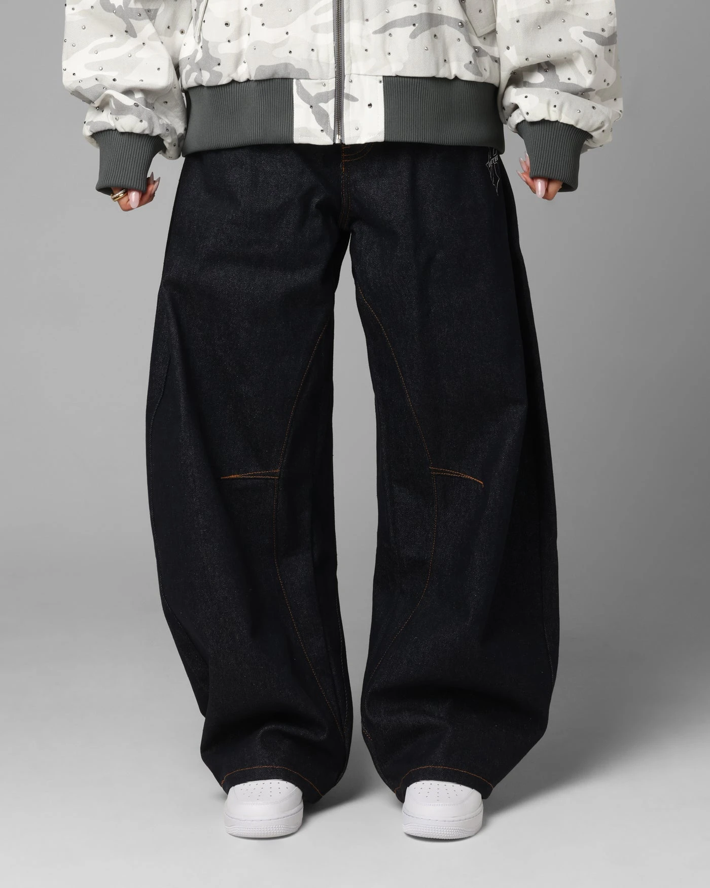 Elevate your fits’ with the latest drop at Loiter. The F-16 Balloon Jeans features contrast stitching with subtle printed graphics on the front which pairs perfectly with the ultra baggy wide leg fit for a look that is out of this world. Don’t sleep on these.