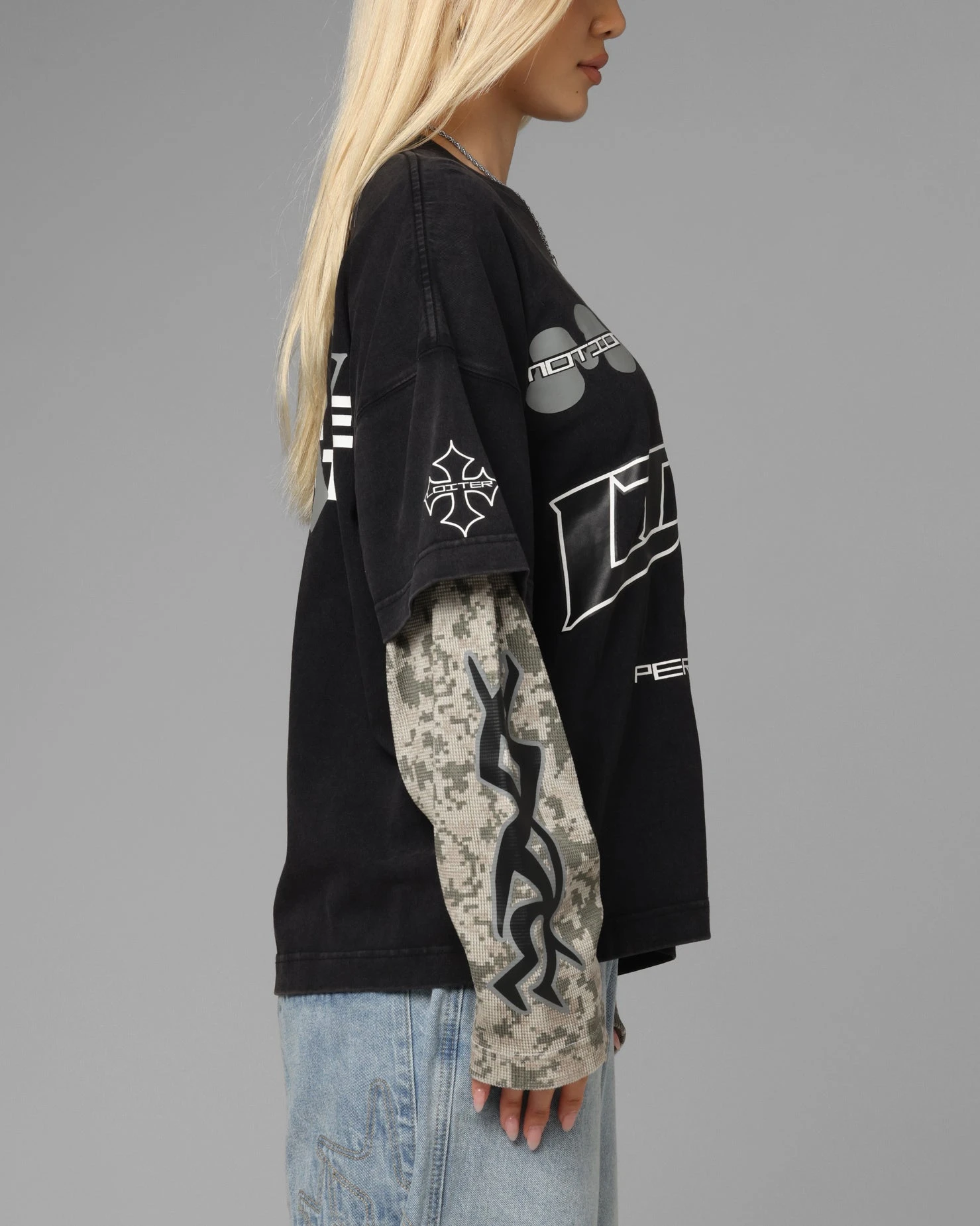 Make the ultimate statement in the Performance Layered Long Sleeve T-Shirt by Loiter. Created to stand out, this tee boasts inspiring printed graphics on an incredibly soft cotton tee with contrast ribbed long sleeves for a double-layered look. It is complemented with dropped shoulders to keep the laidback, streetwear vibes going. Cop yours today at Culture Kings, only while stock lasts.