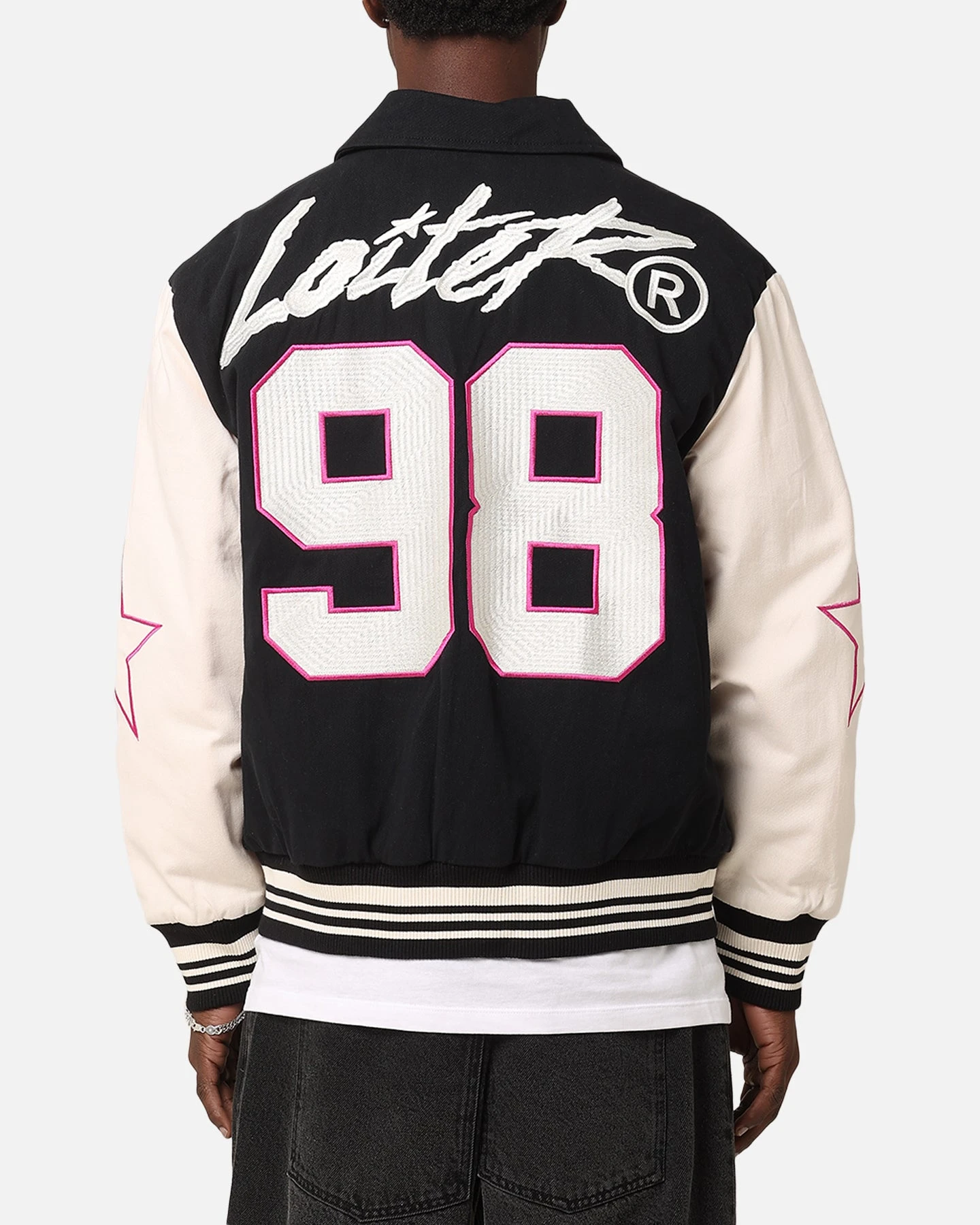 Stay warm while looking fresh and who better to heat up your wardrobe than Loiter! This jacket features a mix of embroidered graphics and chenille appliqués that’ll get you all the compliments, contrast cuffs and hems add a little something extra and the snap summary closure finishes off the classic varsity jacket vibe. Cop yours today at Culture Kings.