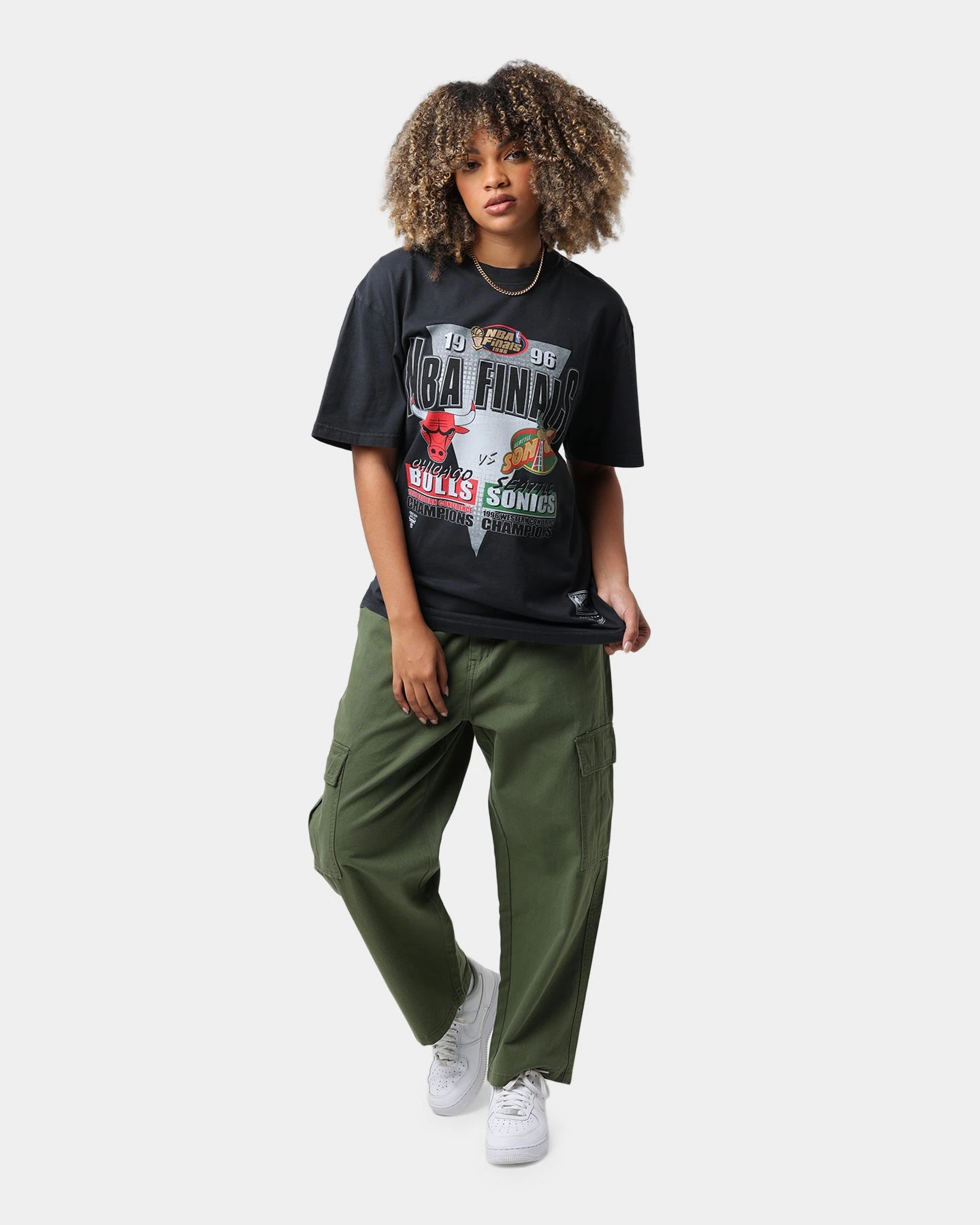 Sports icons make for iconic streetwear with the Chicago Bulls NBA Finals 1996 T-Shirt. Featuring cracked graphics printed on the front and back, quality cotton, and twin needle stitching. Cop this tee for a fire piece!