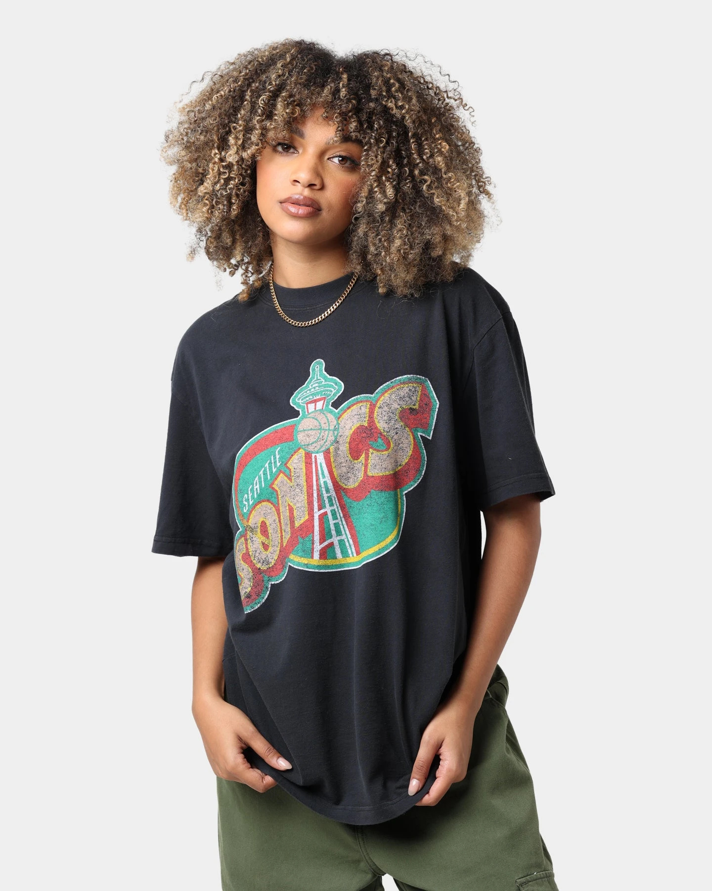 Mitchell & Ness celebrates one of the most iconic and most talked about NBA teams with the Seattle Sonics Oversized Logo Short Sleeve T-Shirt, the ultimate collector’s item for all die-hard fans. Made with soft cotton with a vintage look and feel. Finished with a battered extra-large official team logo to the chest.