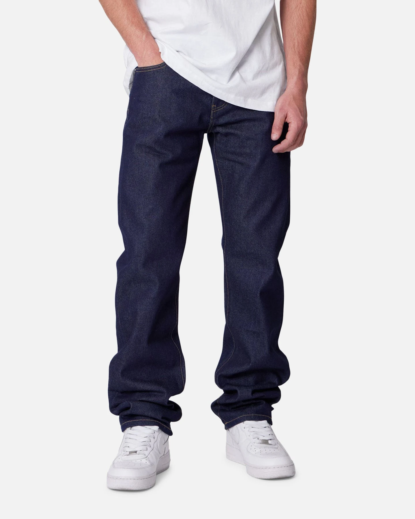Step up your jeans game with the Straight Jeans by MNML. These are constructed with a classic straight-leg fit and treated with a single rinse wash for minimal indigo bleed and a slightly softened texture. This denim features traditional gold contrast stitching and five-pocket construction. Finished with a front fly and metal summary closure for a secure fit. Cop yours today at Culture Kings.