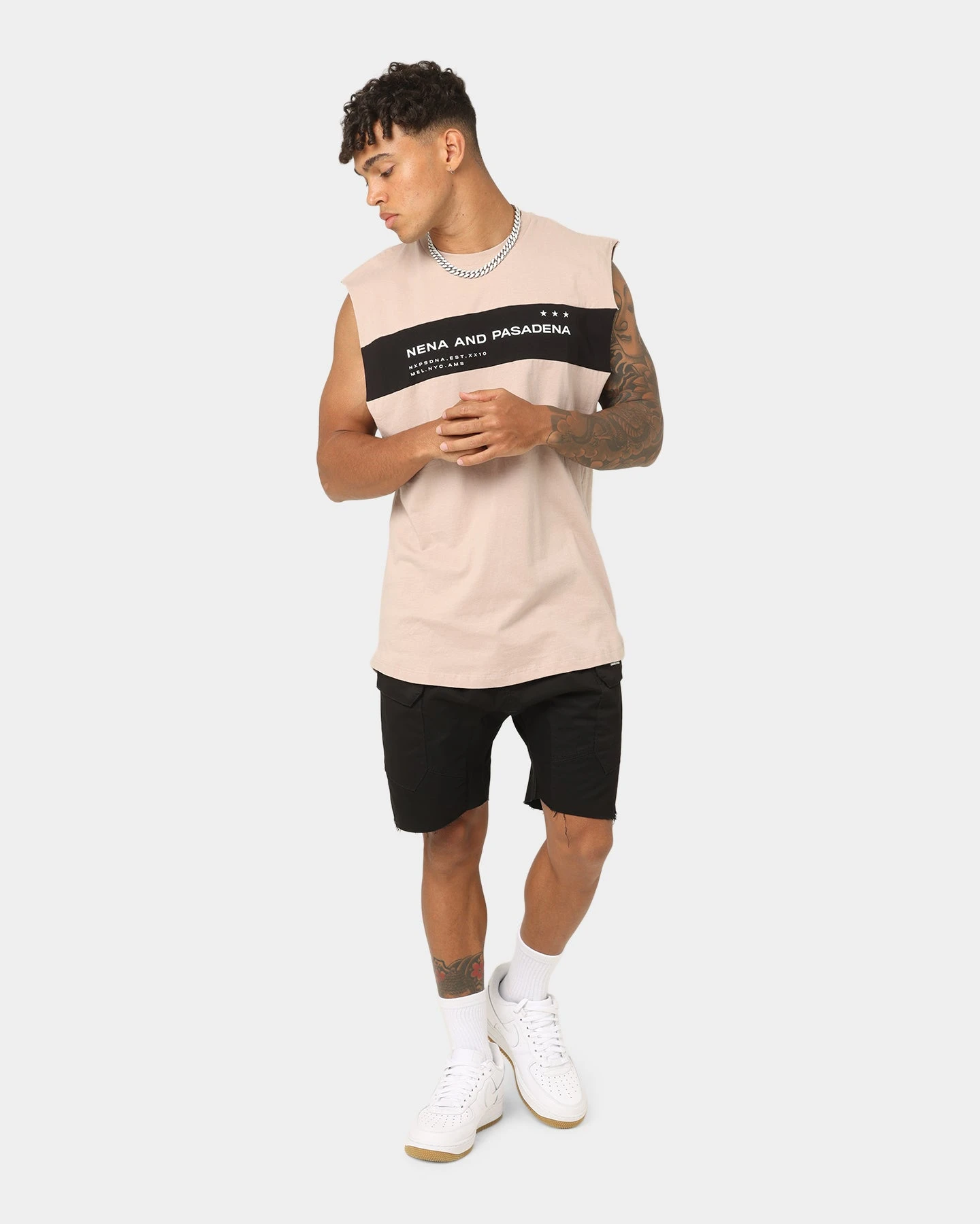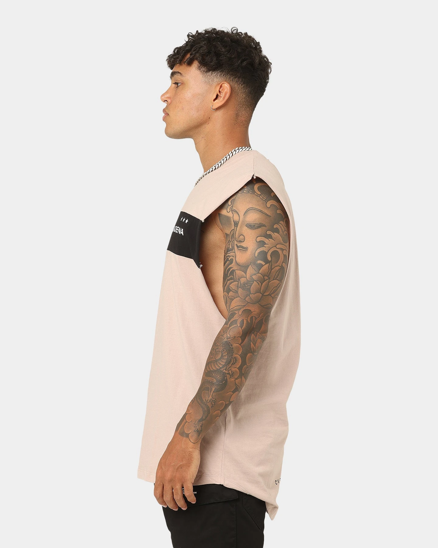 Show off your guns in the Overthrown Scoop Back Muscle T-shirt this summer. This muscle tee features Nena and Pasadena prints on the back and chest, a contrast panel on the chest and raw edges at the armholes.