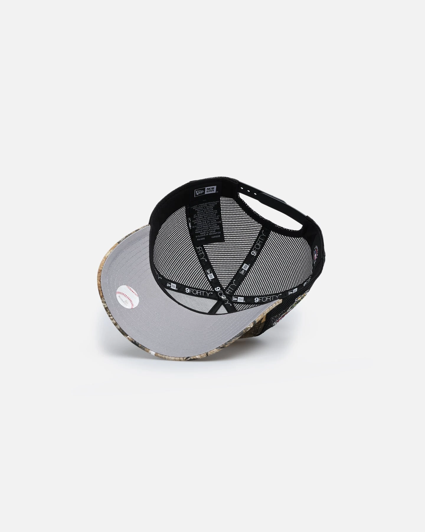 The New Era 9FORTY® A-Frame™ Trucker is an adjustable snapback style that merges the front two crown panels into one, creating a high-profile pinched shape.
