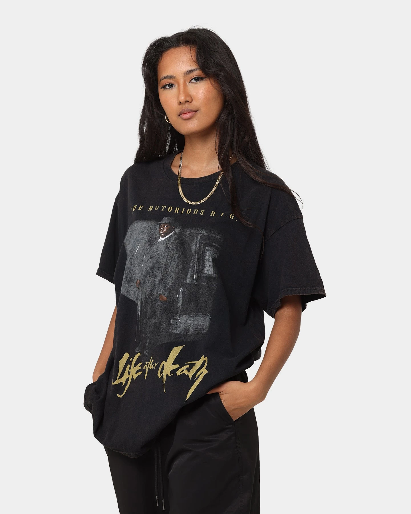 The late great American rapper, The Notorious B.I.G, is ranked by Billboard as among the ten greatest rappers of all time. After the release of his 1994 album ‘Ready To Die’ Biggie became a central figure in the East Coast hip-hop scene and expanded New York City’s visibility in the genre. A drive-by shooting in 1997 took Notorious B.I.G’s life at 24, but his legacy and music live on to this day. Culture Kings are proud to deliver the Official The Notorious B.I.G Capsule. Available in a range of colours, this is must-have merch for every Biggie fan. Each piece has been given the tick of approval from Biggie’s estate including his mum, Voletta Wallace. Due to the process involved with acid-washing these tees, sizing can vary from garment to garment. We recommend ordering at least 1 size bigger than normal