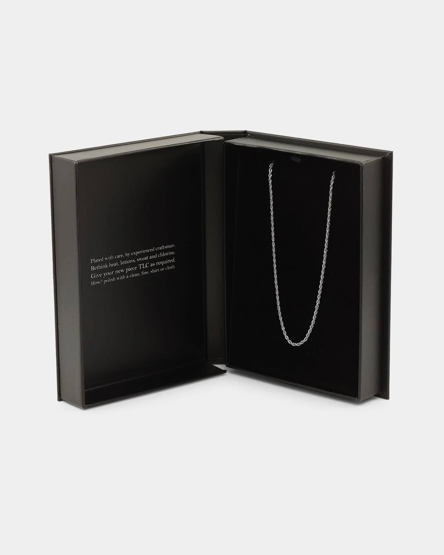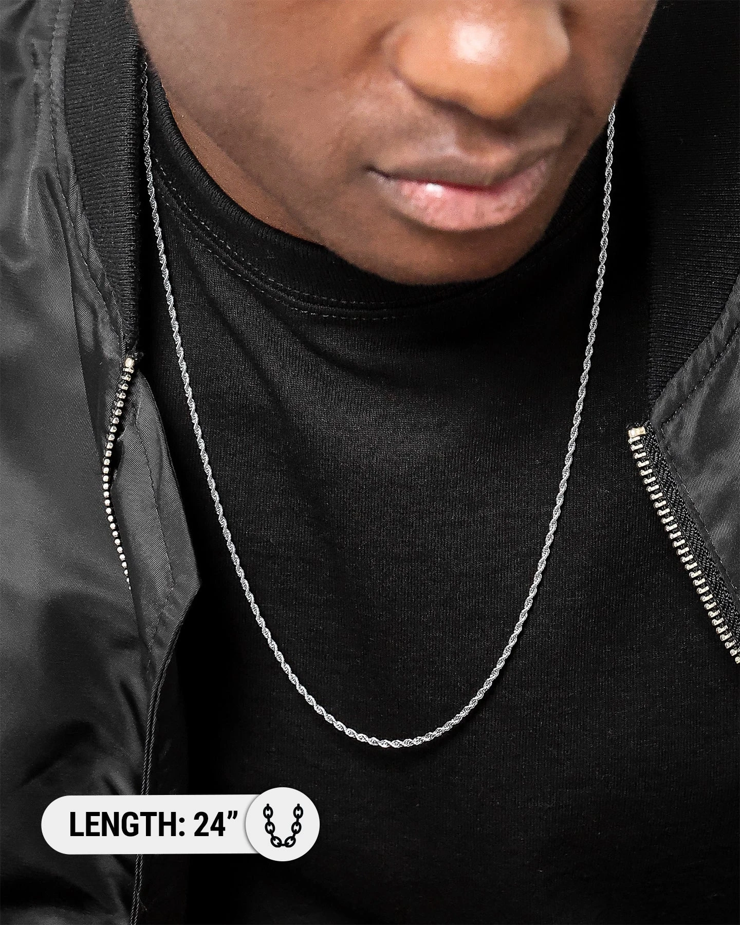 The NXS 2mm Rope Necklace is the luxe, minimalistic detail you need to finish off any ‘fit with a touch of ice. A fine, rope chain makes for an intricate addition to your accessories, boosting every look. With a stainless steel base and 18K white-gold plating for that must-cop vibe. Get your hands on this today.