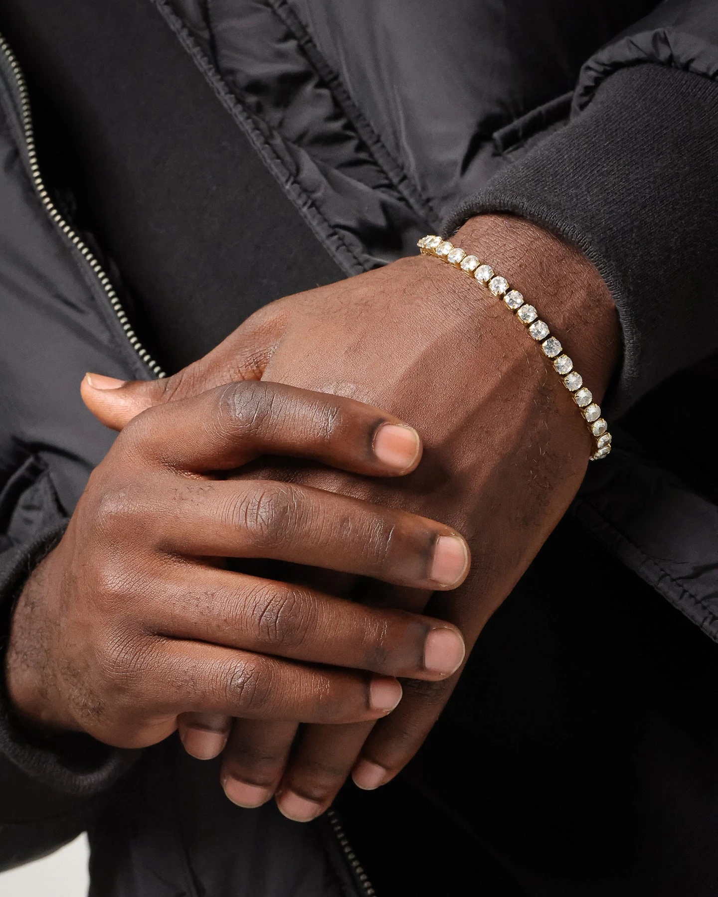 Add some class to your next fit with the iced out Round Cut Tennis Bracelet from NXS. Featuring a classic 18k gold plated tennis-style, and a lobster class closure, this piece will become your go-to accessory to keep you looking fire all year round. Get your hands on it today at Culture Kings.