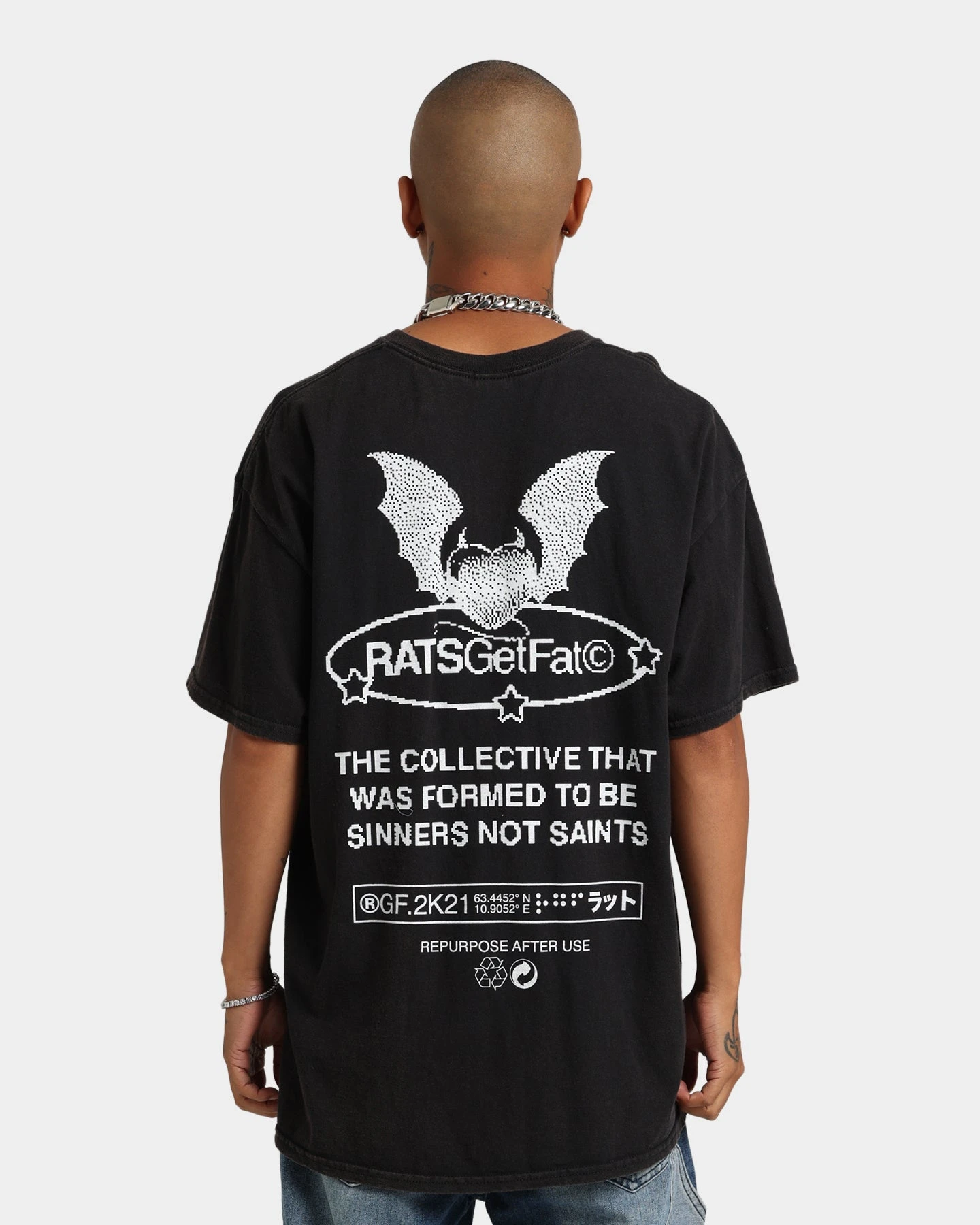 We recommend sizing up for a more baggy look.
