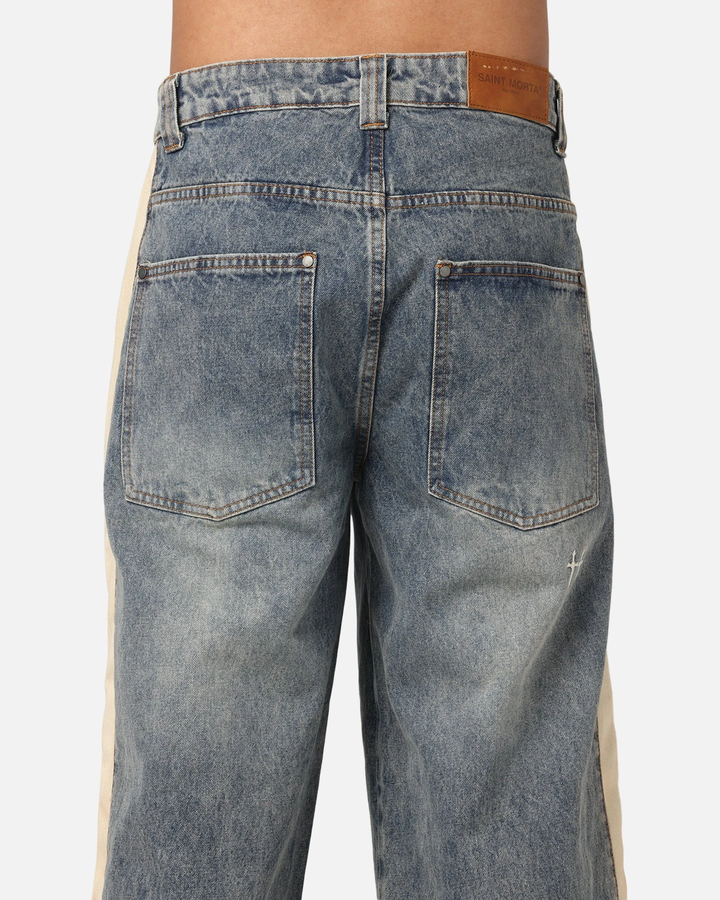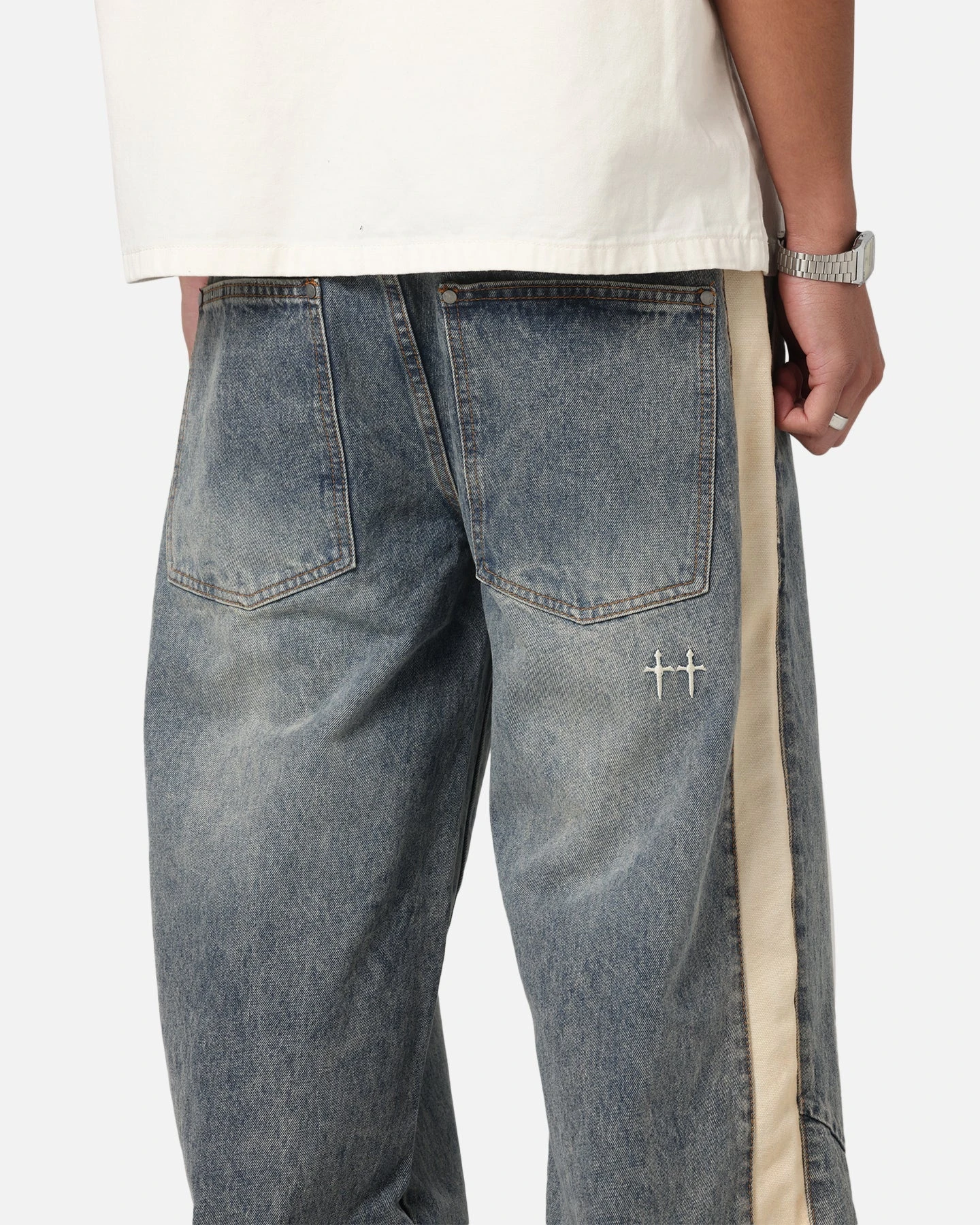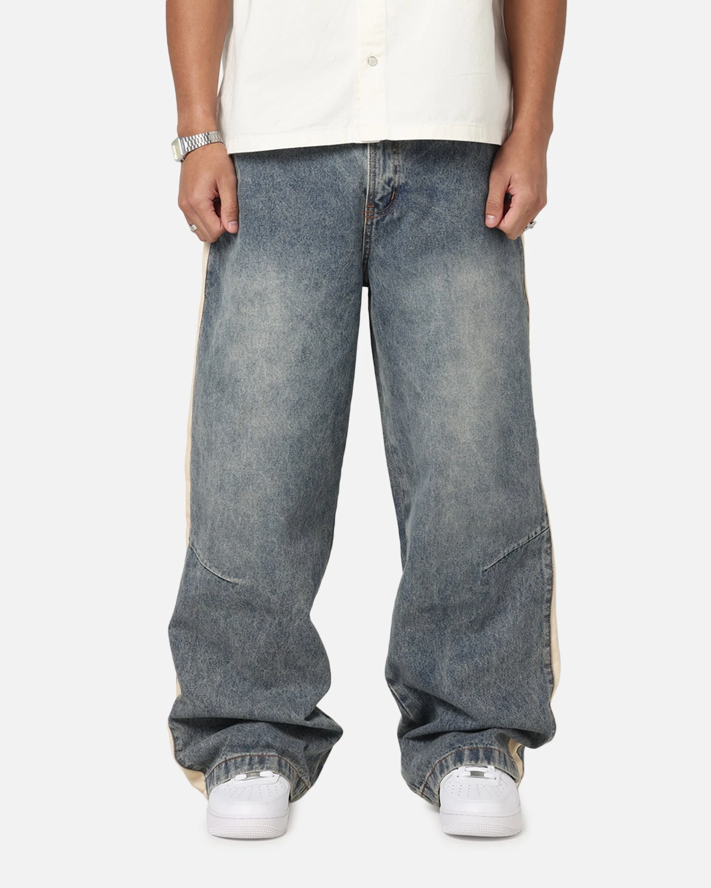 What screams streetwear more than some baggy denim? That’s where the Amplus Sidewinder Jeans have you covered. A simple yet classic look is created with the washed denim, contrast stitching detail at the front and longer length that helps it fall just right. Finished with pleats at the knee and a detachable pendant. Cop yours today.