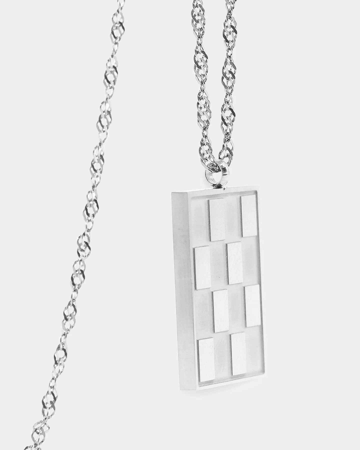 The finishing move to your outfit, the Checkerboard Pendant brings it all together. A thin twist chain features an engraved checkerboard pattern pendant for an elegant touch. Be sure to secure yours today!