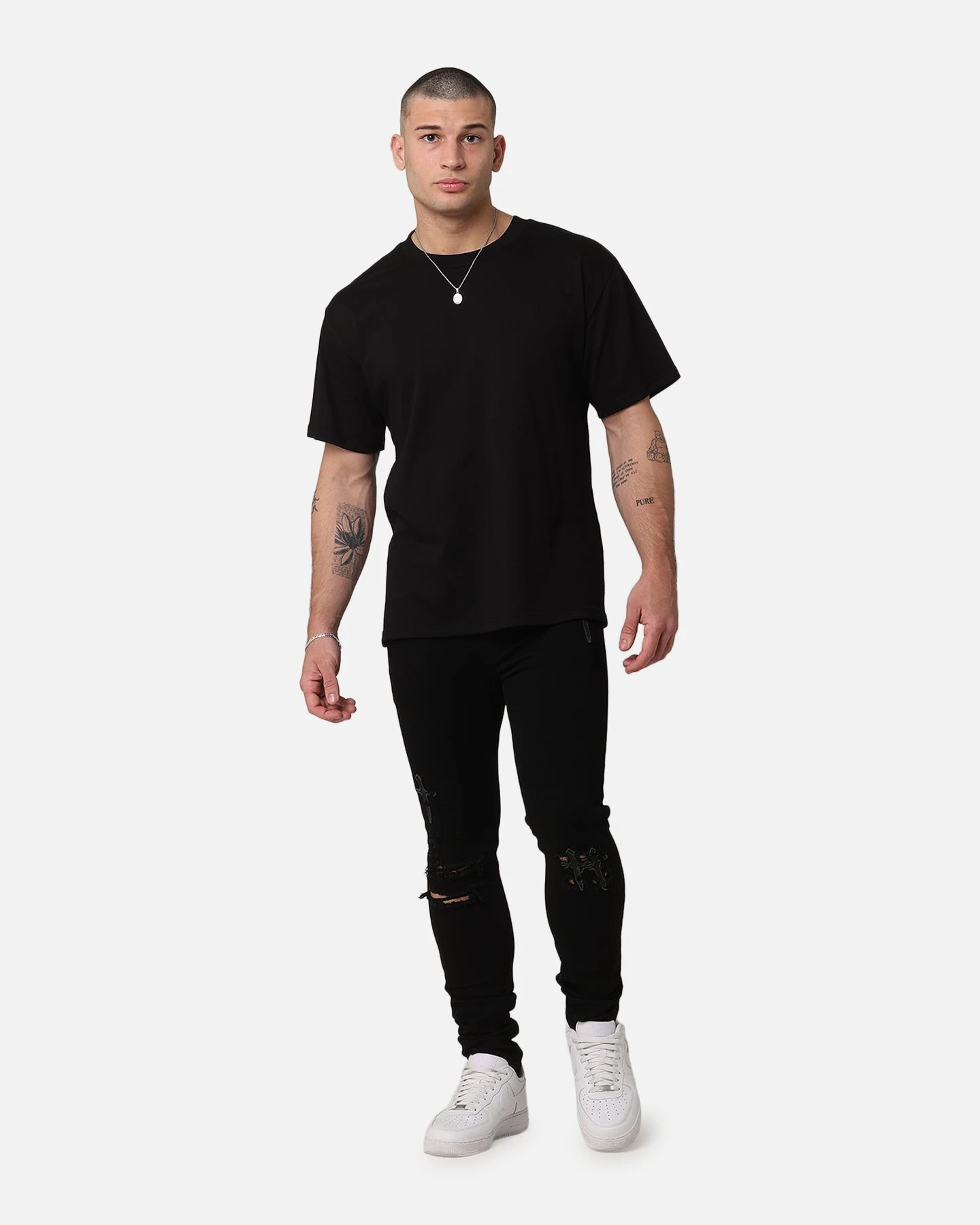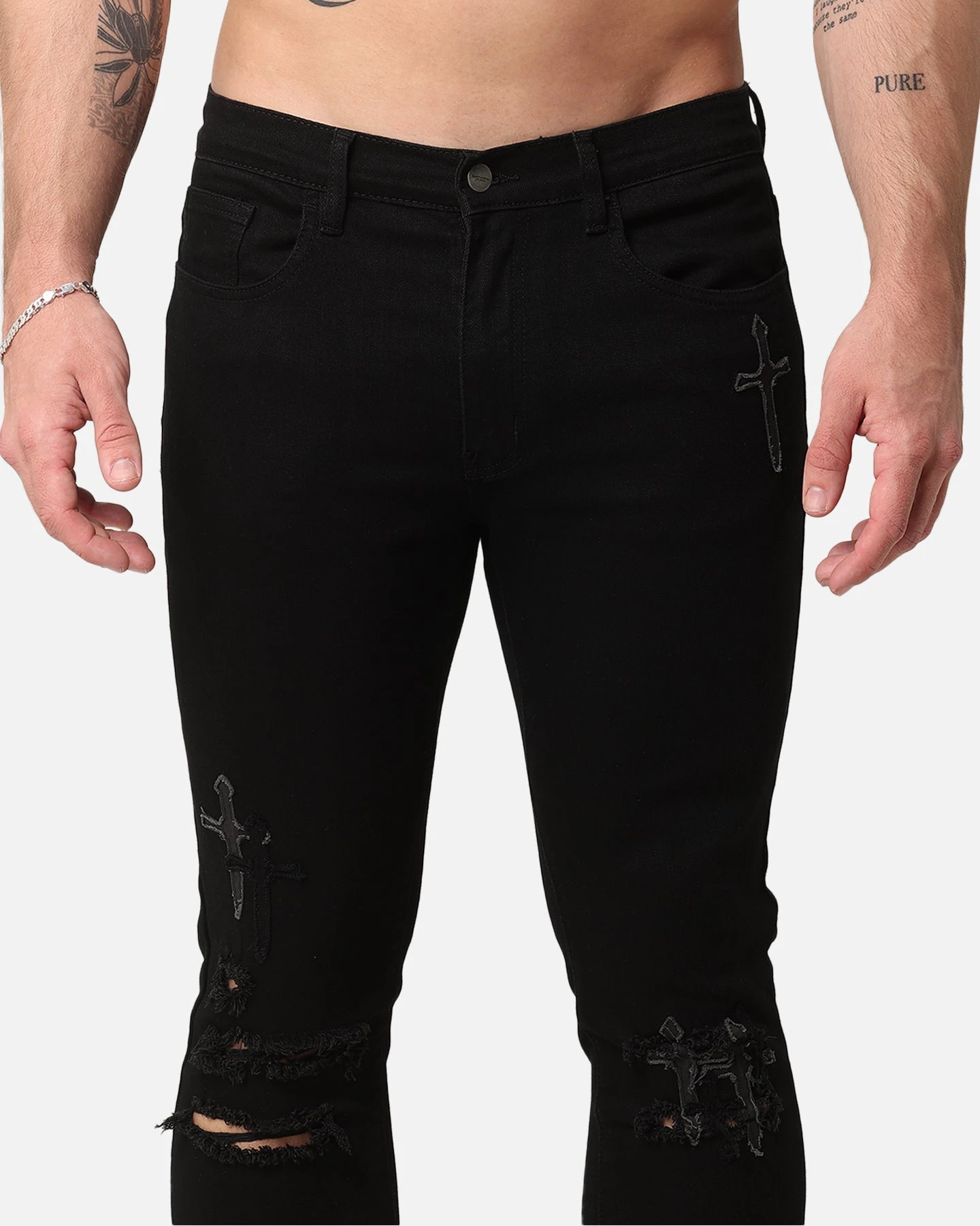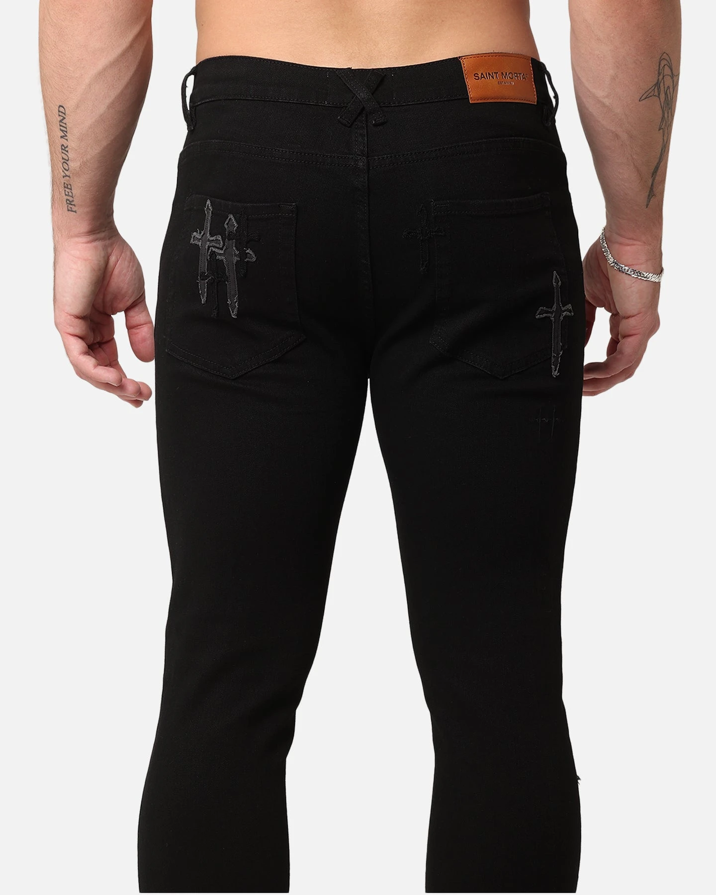 Level up your jeans game with the Crossfire Jeans by Saint Morta. Featuring embroidered Saint Morta cross branding throughout along with distressing at the knee for a striking look. Finished with a super skinny fit and belt loops for a customised fit. Cop yours today at Culture Kings