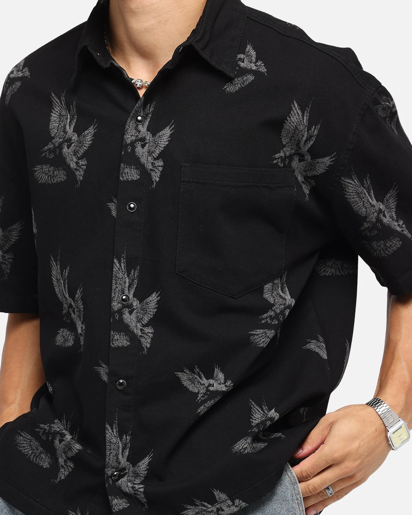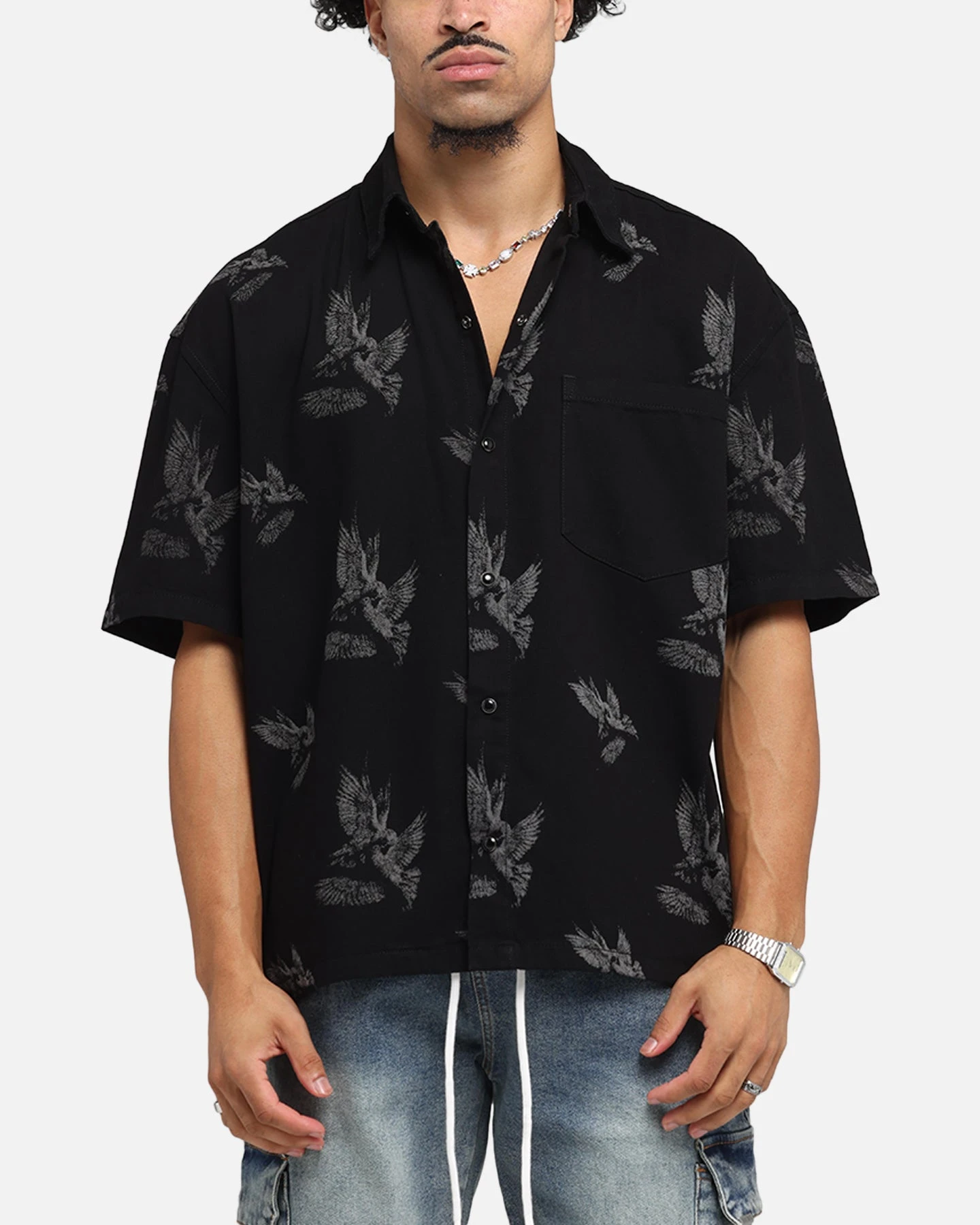 Elevate your fits’ with the Doves Boxy Denim Button Up Shirt by Saint Morta. Decked out with printed graphics and dropped shoulders for a laidback streetwear vibe. Finished with a full summary up close for a customise look that is made for any occasion. Cop yours today at Culture Kings.
