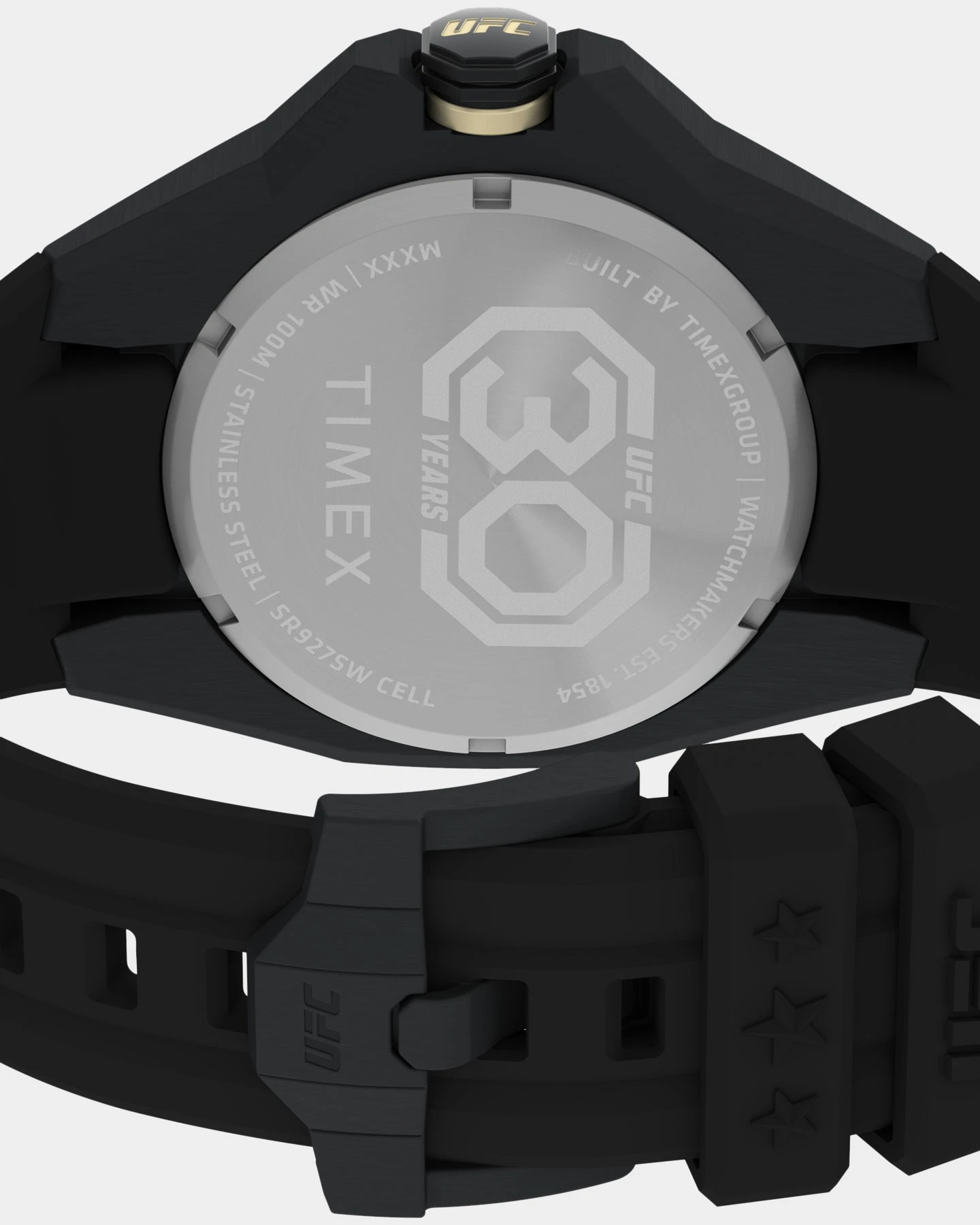 Show off your skills and your style with the UFC Pro 45mm 30th Anniversary Watch. This timepiece features all the necessities for the ultimate training session. Not only is it powerful with its 100m water resistance but it also adds a touch of luxury with a synthetic ruby marking the 11th hour on the dial which is inspired by the design of the iconic UFC Championship belt. Cop yours at Culture Kings!